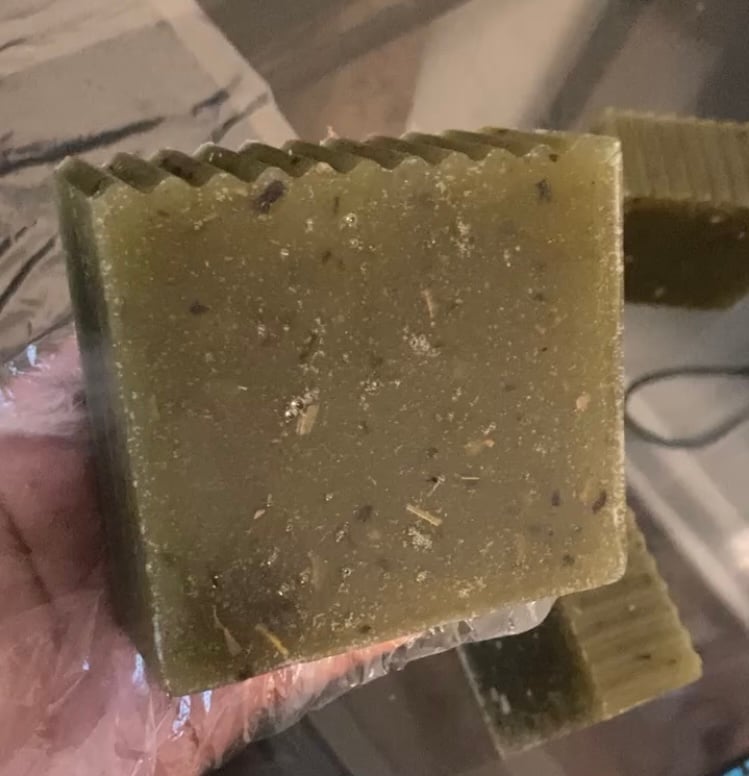 The grounded herbs inside of the bar help to provide exfoliating benefits.